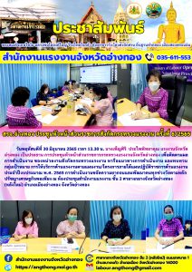 สรจ.อ่างทอง จัดประชุมหัวหน้าส่วนราชการสังกัดกระทรวงแรงงาน ครั้งที่ 6/2565