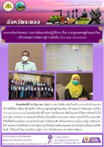 แรงงานจังหวัดระยอง ร่วมการสัมมนาเชิงปฏิบัติการ เรื่อง มาตรฐานเศรษฐกิจหมุนเวียน : สร้างสมดุลการพัฒนาสู่ความยั่งยืน (Circular Economy)