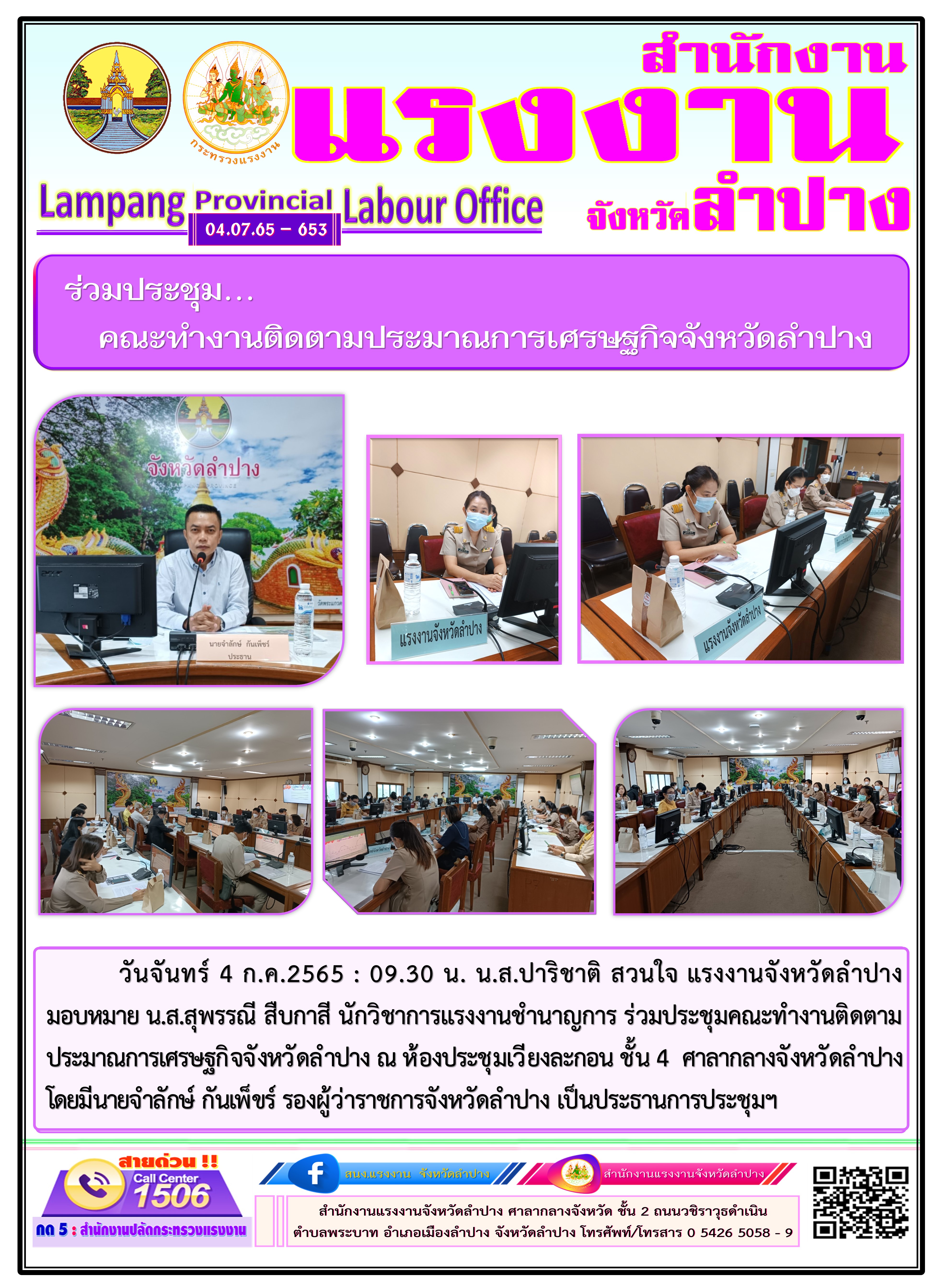 สรจ.ลำปาง ร่วมประชุมคณะทำงานติดตามประมาณการเศรษฐกิจจังหวัดลำปาง