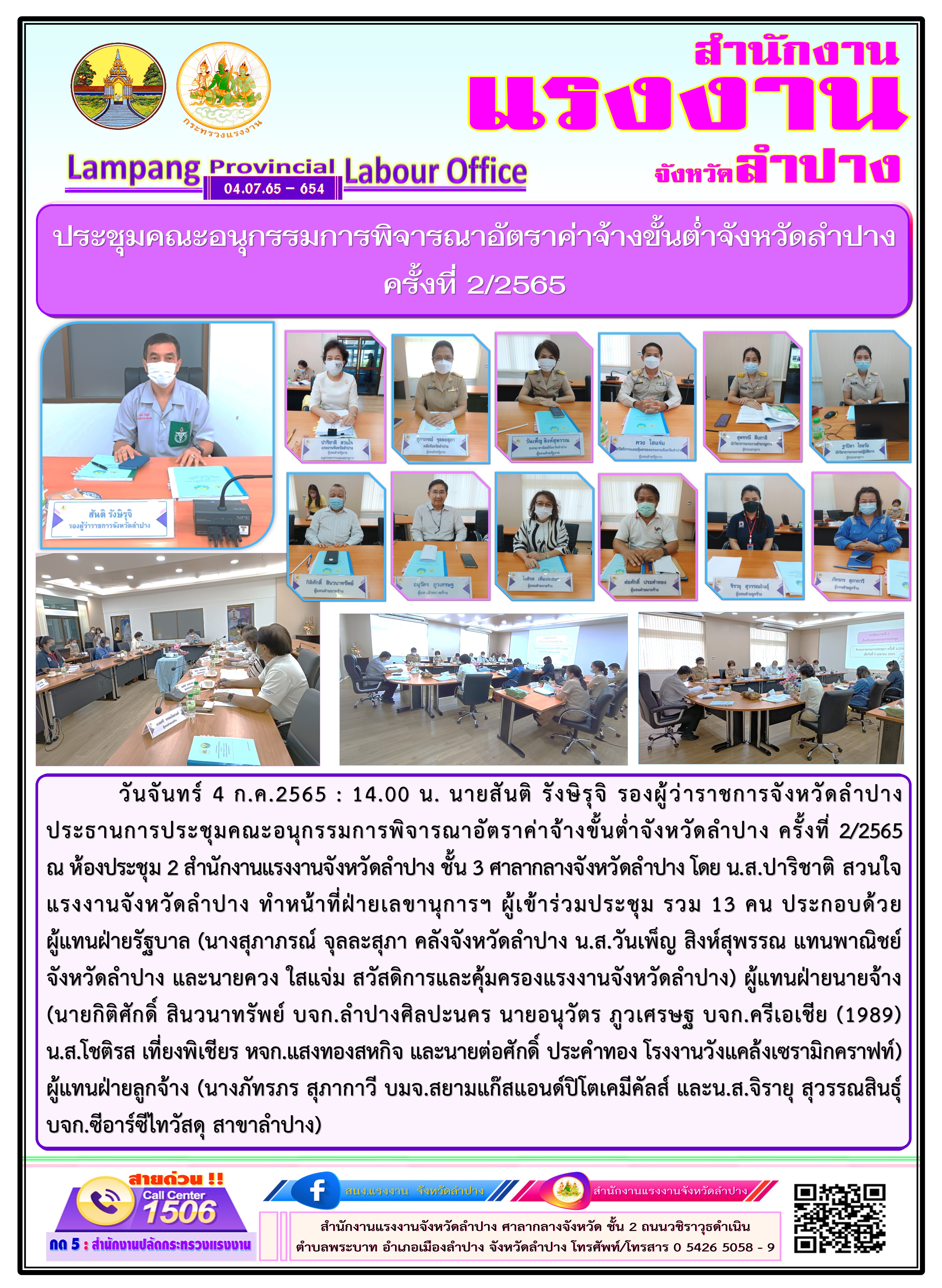 การประชุมคณะอนุกรรมการพิจารณาอัตราค่าจ้างขั้นต่ำจังหวัดลำปาง ครั้งที่ 2/2565