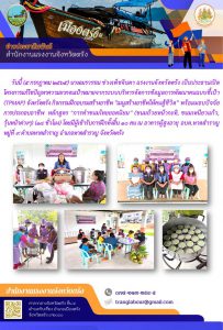 แรงงานจังหวัดตรัง เป็นประธานเปิดโครงการแก้ไขปัญหาความยากจนเป้าหมายจากระบบบริหารจัดการข้อมูลการพัฒนาคนแบบชี้เป้า (TPMAP) จังหวัดตรัง กิจกรรมฝึกอบรมสร้างอาชีพ “เมนูสร้างอาชีพให้คนสู้ชีวิต” พร้อมมอบปัจจัยการประกอบอาชีพ หลักสูตร “การทำขนมไทยยอดนิยม” (ขนมถ้วยหน้ากะทิ, ขนมเหนียวแก้ว, วุ้นหน้าต่างๆ)