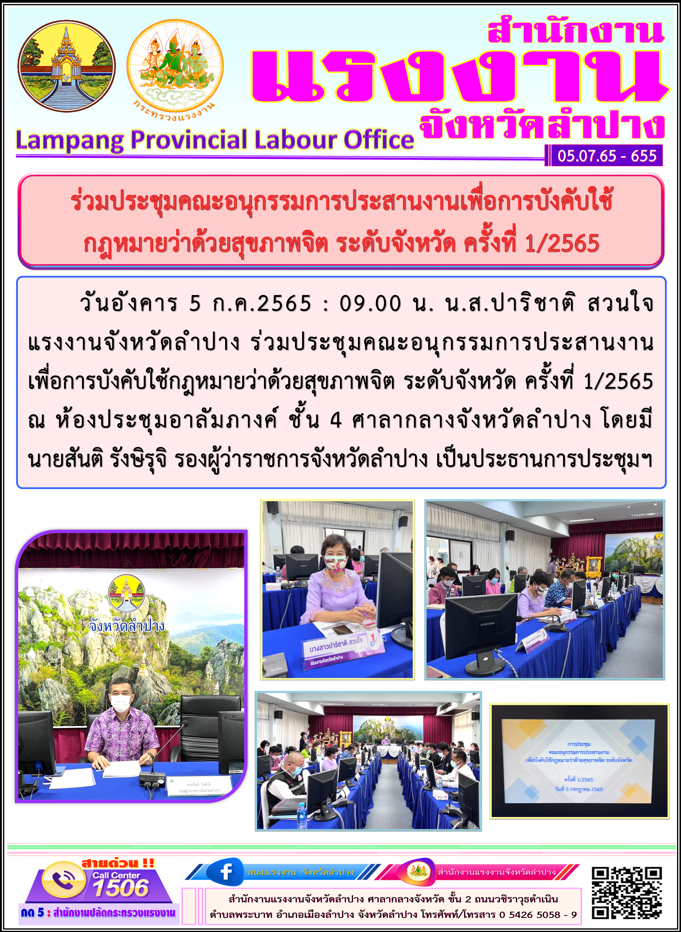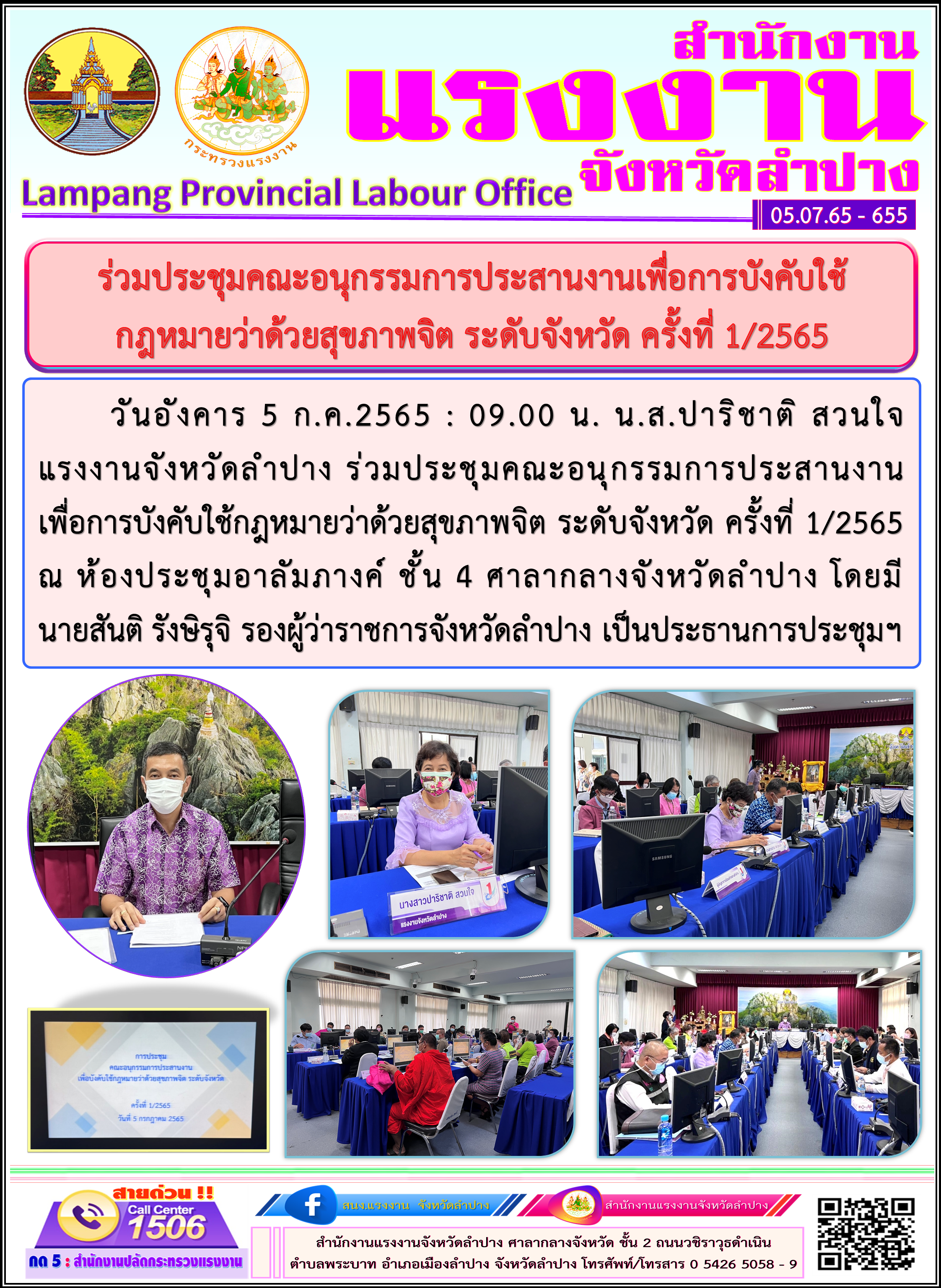 สรจ.ลำปาง ร่วมประชุมคณะอนุกรรมการประสานงานเพื่อการบังคับใช้กฎหมายว่าด้วยสุขภาพจิต ระดับจังหวัด ครั้งที่ 1/2565