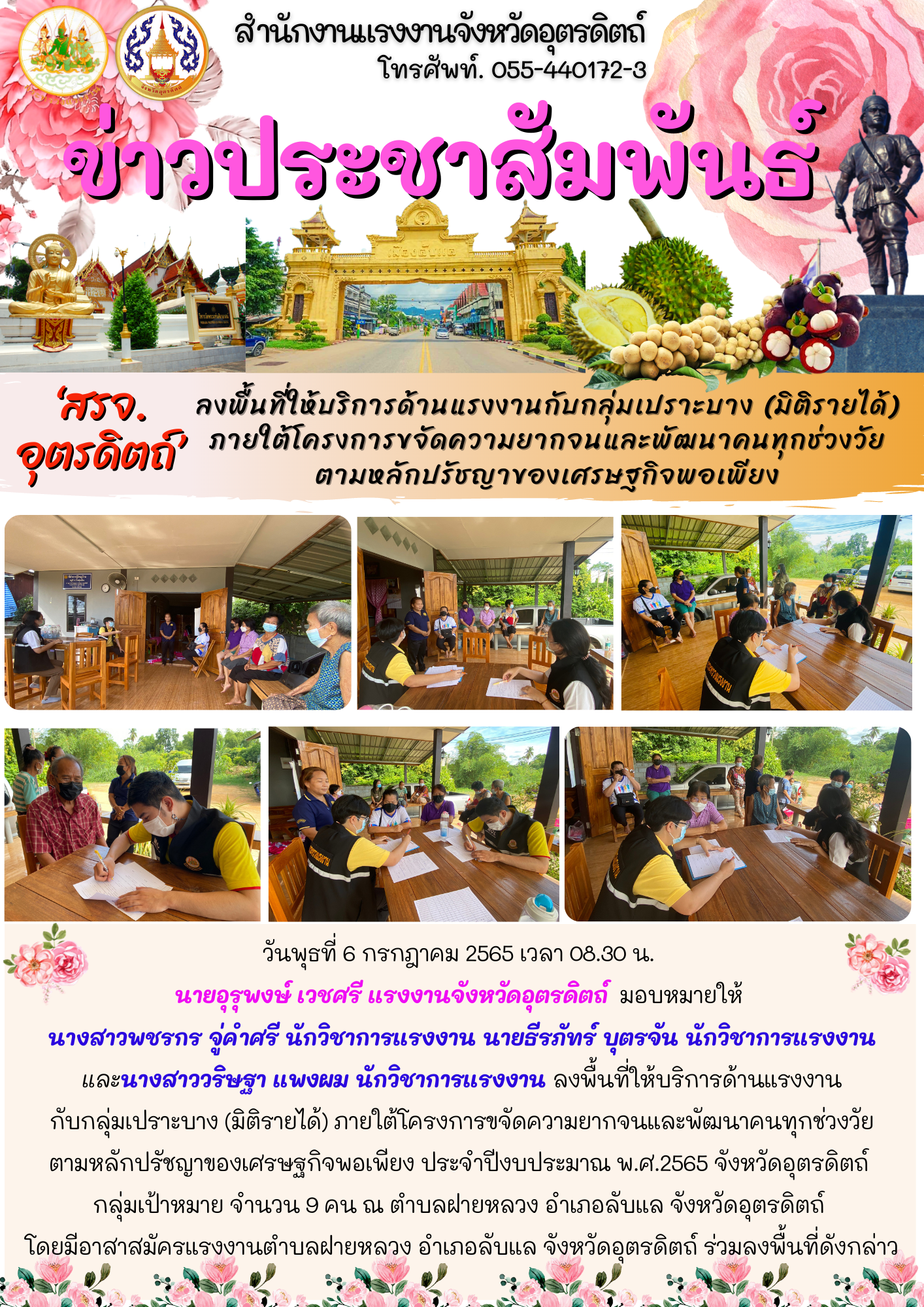 สรจ.อต. ลงพื้นที่ให้บริการด้านแรงงานกับกลุ่มเปราะบาง (มิติรายได้) ภายใต้โครงการขจัดความยากจนและพัฒนาคนทุกช่วงวัยตามหลักปรัชญาของเศรษฐกิจพอเพียง