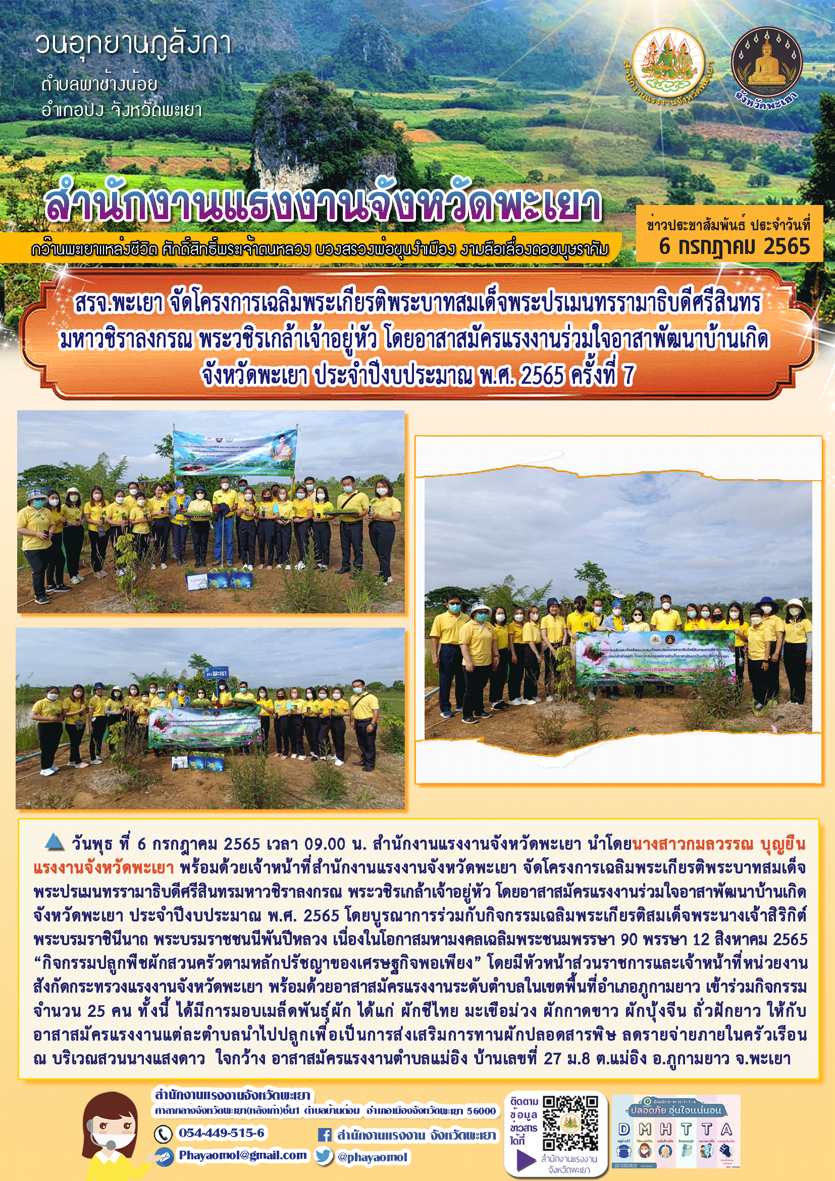 สรจ.พะเยา จัดโครงการเฉลิมพระเกียรติพระบาทสมเด็จพระปรเมนทรรามาธิบดีศรีสินทรมหาวชิราลงกรณ พระวชิรเกล้าเจ้าอยู่หัว โดยอาสาสมัครแรงงานร่วมใจอาสาพัฒนาบ้านเกิด จังหวัดพะเยา ประจำปีงบประมาณ พ.ศ. 2565 ครั้งที่ 7