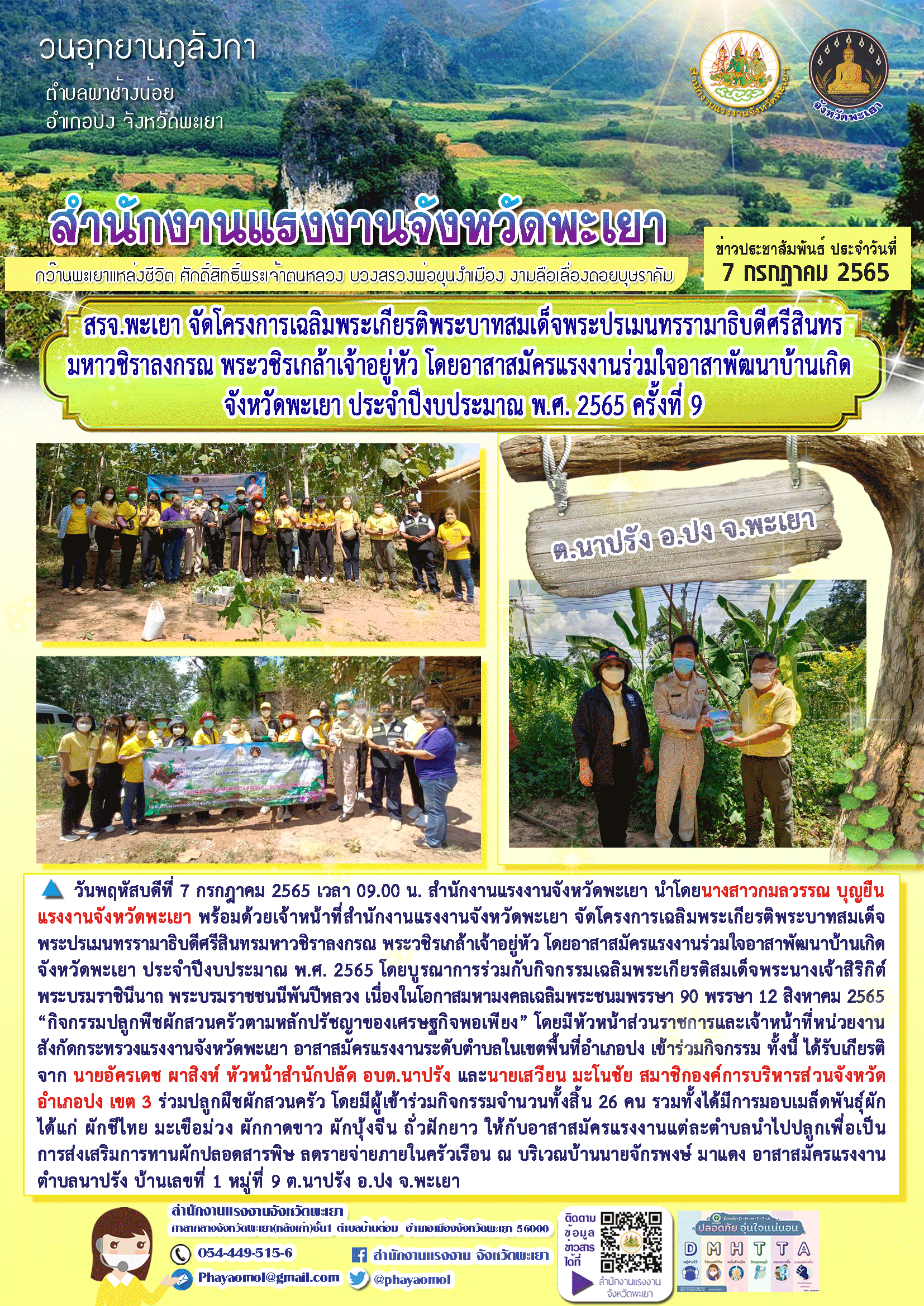 สรจ.พะเยา จัดโครงการเฉลิมพระเกียรติพระบาทสมเด็จพระปรเมนทรรามาธิบดีศรีสินทรมหาวชิราลงกรณ พระวชิรเกล้าเจ้าอยู่หัว โดยอาสาสมัครแรงงานร่วมใจอาสาพัฒนาบ้านเกิด จังหวัดพะเยา ประจำปีงบประมาณ พ.ศ. 2565 ครั้งที่ 7