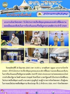 แรงงานจังหวัดสงขลา รับโล่ประกาศเกียรติคุณบุคคลและองค์กรที่มีผลงานยอดเยี่ยมและดีเด่นในการป้องกันและแก้ไขปัญหายาเสพติด ประจำปี 2564