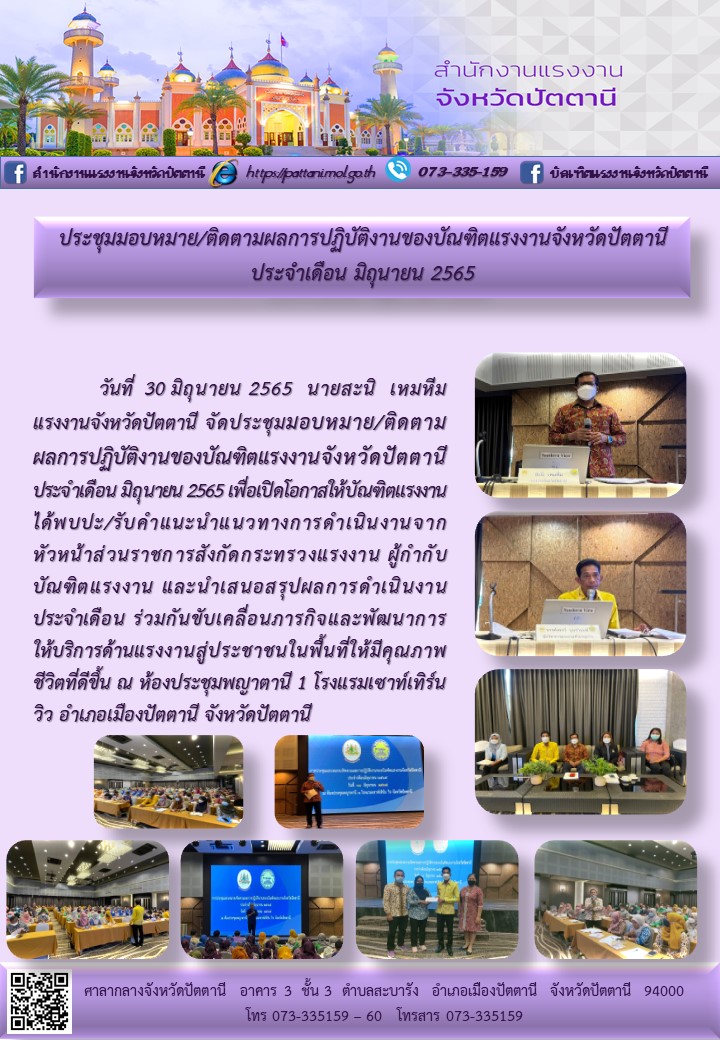 สรจ.ปัตตานี ร่วมประชุมมอบหมาย/ติดตามผลการปฏิบัติงานของบัณฑิตแรงงานจังหวัดปัตตานี ประจำเดือน มิถุนายน 2565