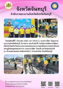 นางสาววนิดา เงินรูปงาม แรงงานจังหวัดจันทบุรี ข้าราชการ และเจ้าหน้าที่ ร่วมกิจกรรมจิตอาสาพัฒนาเนื่องในวันคล้ายวันพระบรมราชสมภพของพระบาทสมเด็จพระบรมชนกาธิเบศร มหาภูมิพลอดุลยเดชมหาราช บรมนาถบพิตร วันชาติ และวันพ่อแห่งชาติ