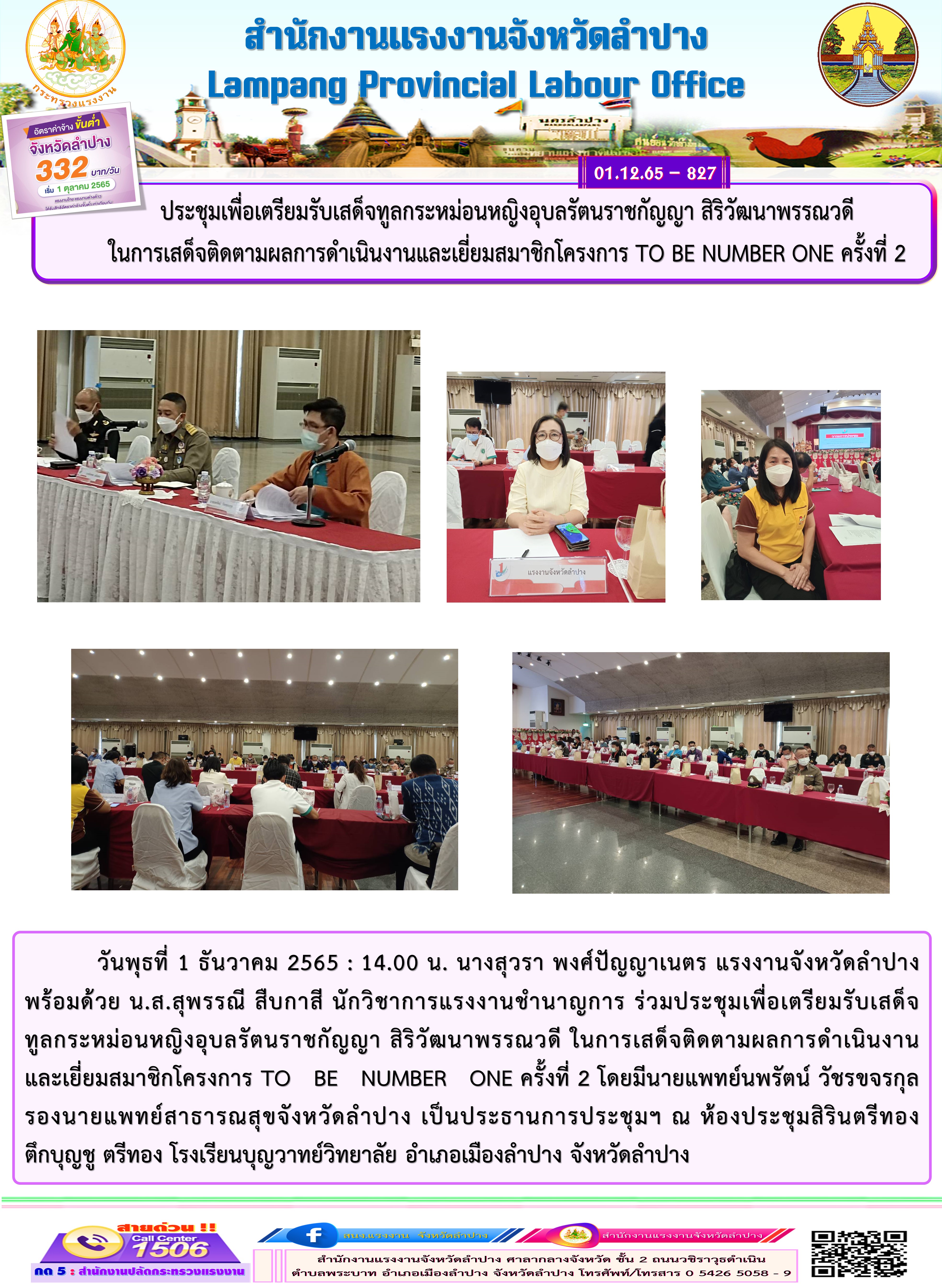 สรจ.ลำปาง ประชุมเพื่อเตรียมรับเสด็จ ทูลกระหม่อนา สิริวัฒนาพรรณวดี ในการเสด็จติดตามผลการดำเนินงาน และเยี่ยมสมาชิกโครงการ TO BE NUMBER ONE ครั้งที่ 2หญิงอุบลรัตนราชกัญญ