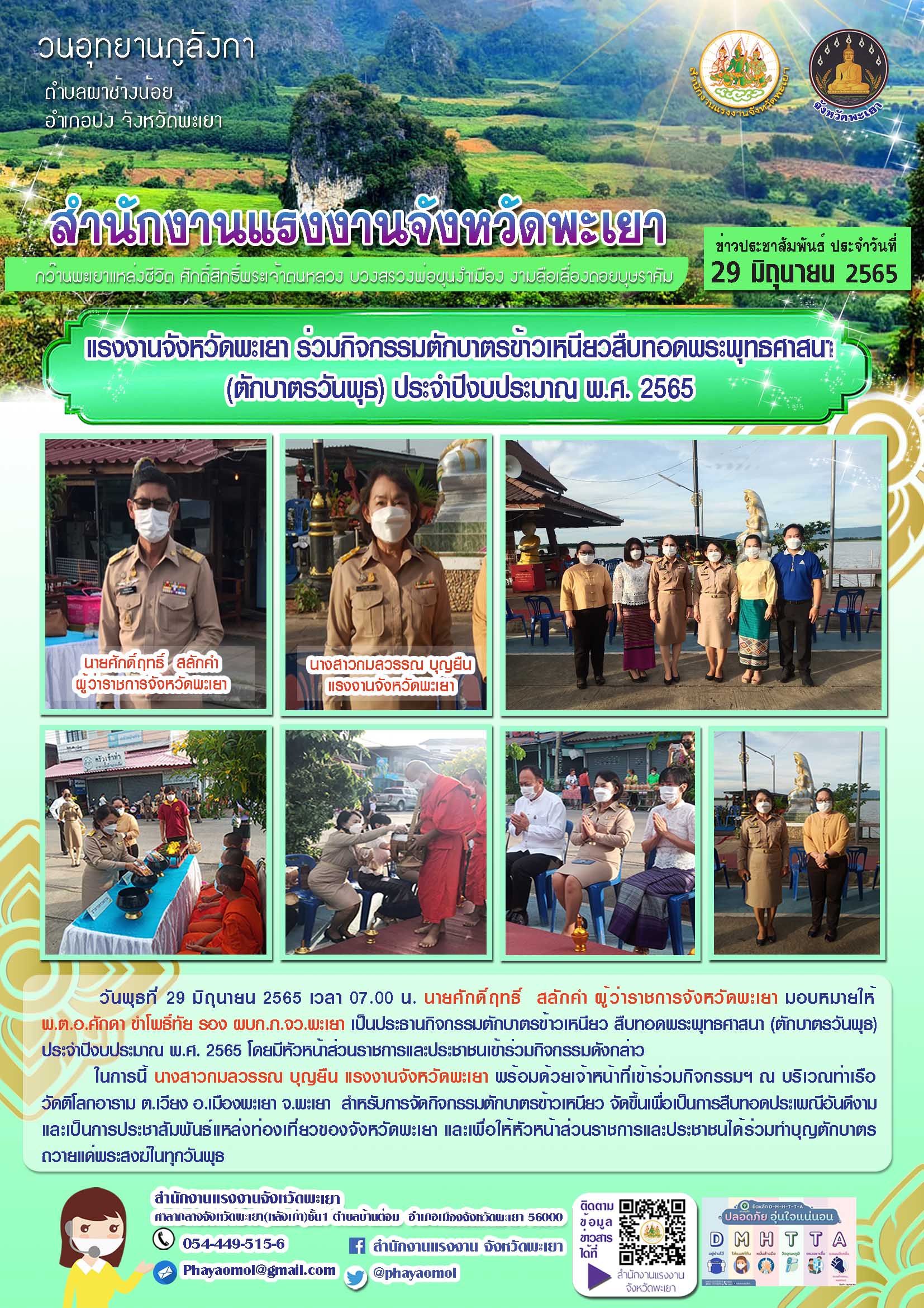 แรงงานจังหวัดพะเยา ร่วมกิจกรรมตักบาตรข้าวเหนียวสืบทอดพระพุทธศาสนา (ตักบาตรวันพุธ) ประจำปีงบประมาณ พ.ศ. 2565
