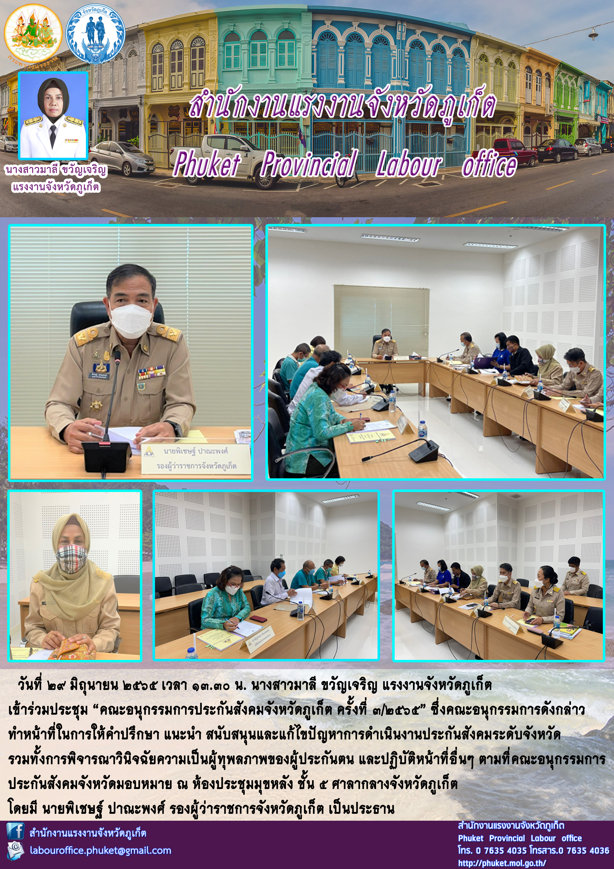 นางสาวมาลี ขวัญเจริญ แรงงานจังหวัดภูเก็ต เข้าร่วมประชุม “คณะอนุกรรมการประกันสังคมจังหวัดภูเก็ต ครั้งที่ 3/2565”