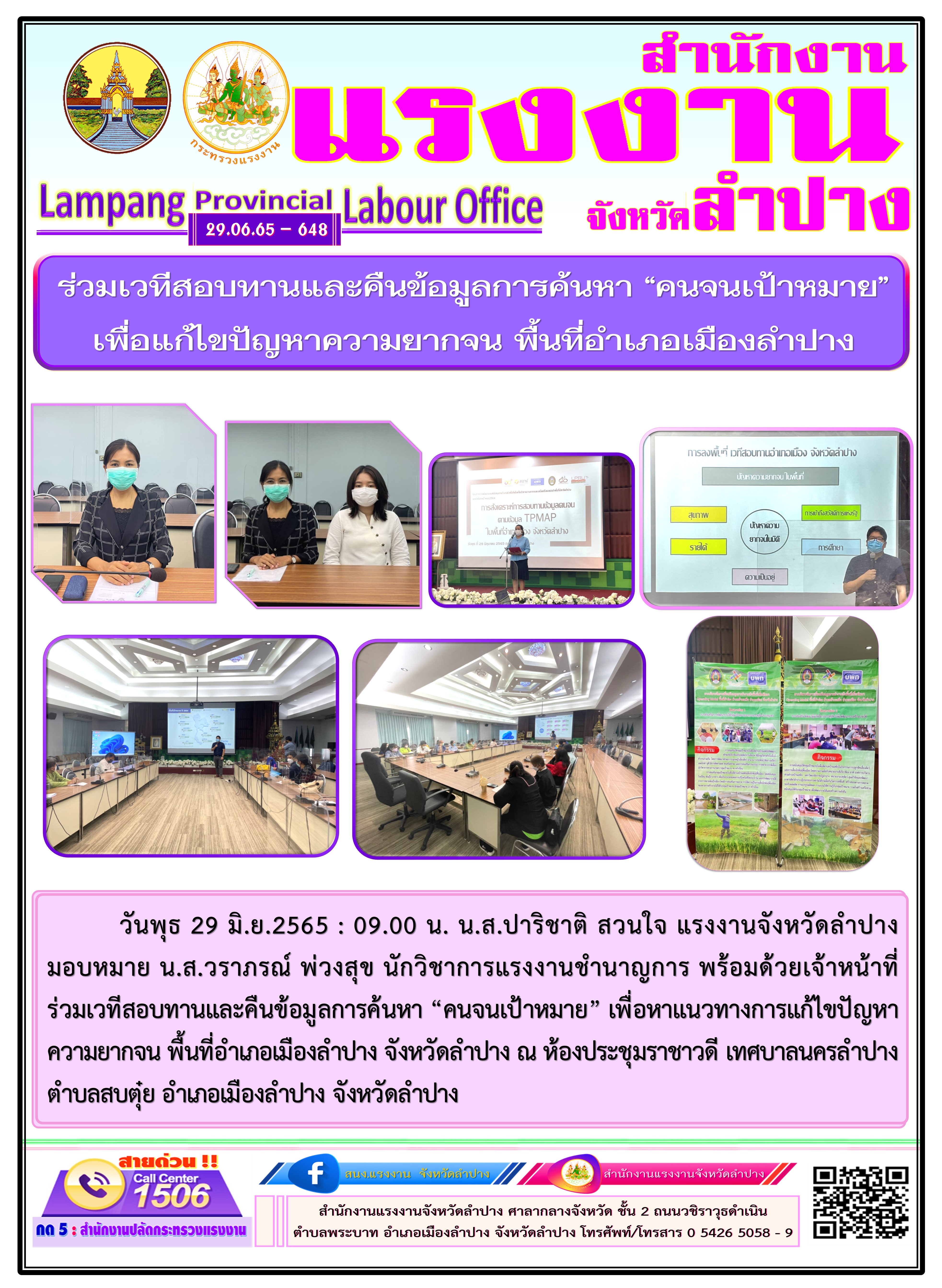 สรจ.ลำปาง ร่วมเวทีสอบทานและคืนข้อมูลการค้นหา “คนจนเป้าหมาย” เพื่อแก้ไขปัญหาความยากจน พื้นที่อำเภอเมืองลำปาง