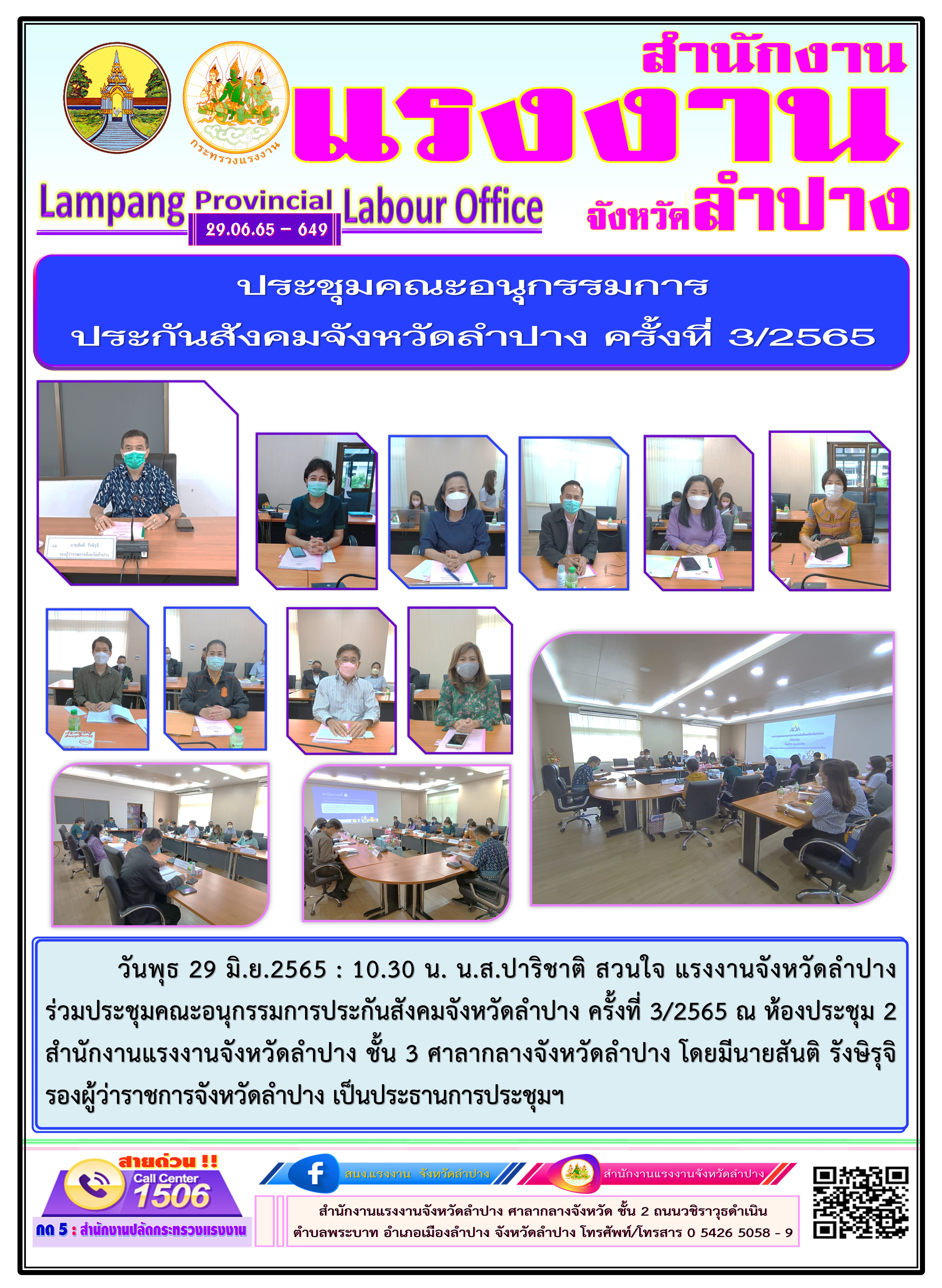 การประชุมคณะอนุกรรมการประกันสังคมจังหวัดลำปาง ครั้งที่ 3/2565