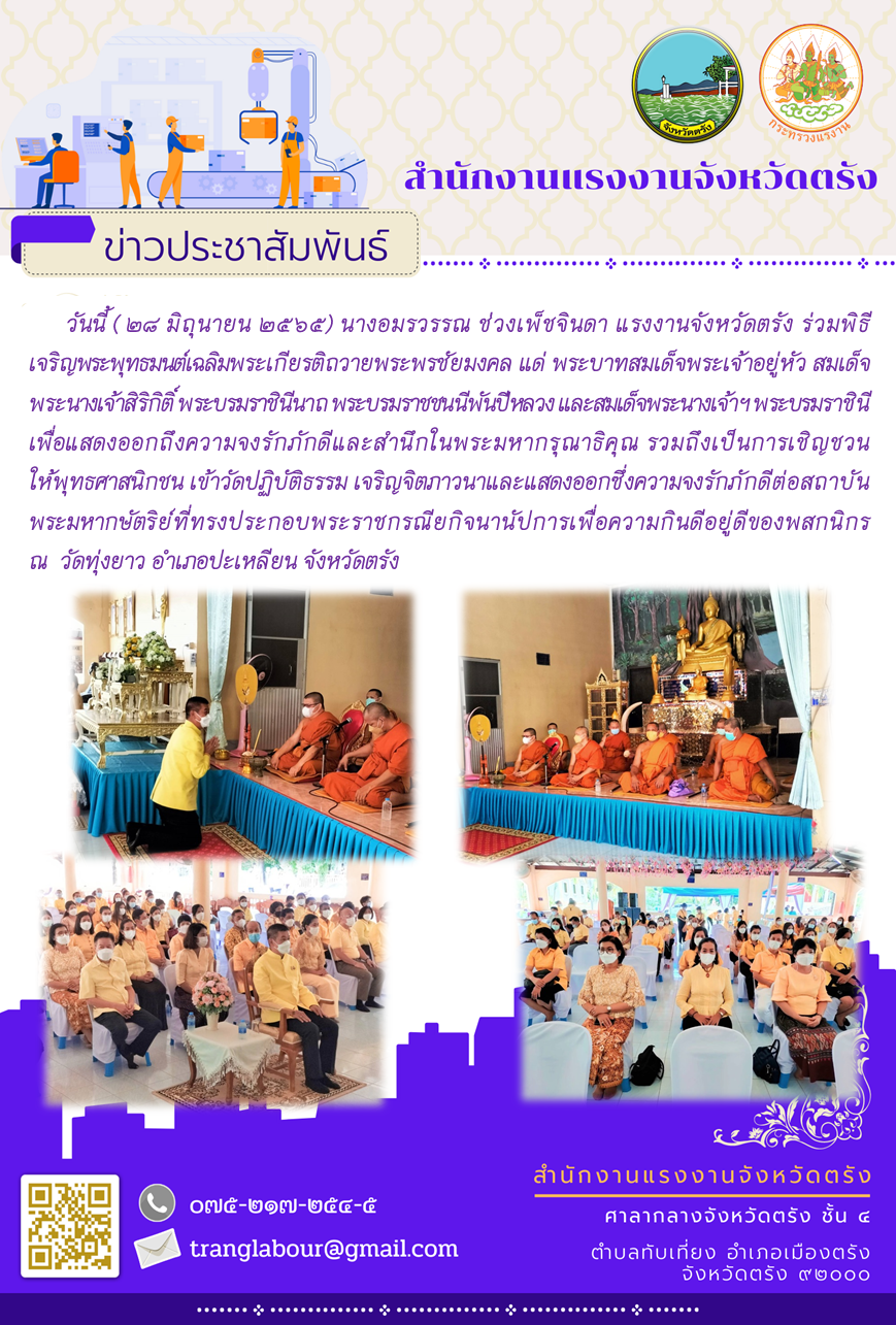 แรงงานจังหวัดตรัง ร่วมพิธีเจริญพระพุทธมนต์เฉลิมพระเกียรติถวายพระพรชัยมงคลฯ