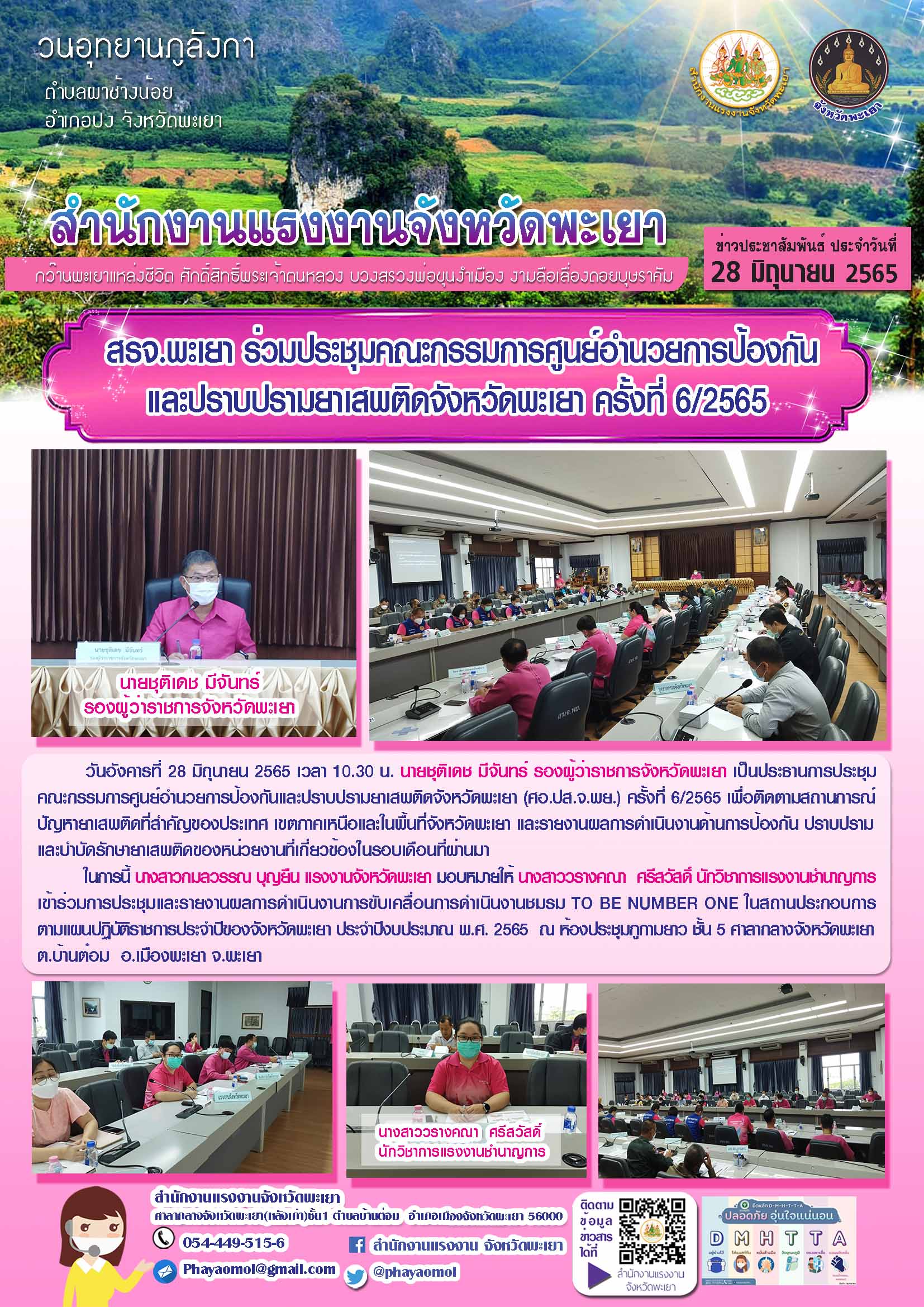 สรจ.พะเยา ร่วมประชุมคณะกรรมการศูนย์อำนวยการป้องกันและปราบปรามยาเสพติดจังหวัดพะเยา ครั้งที่ 6/2565