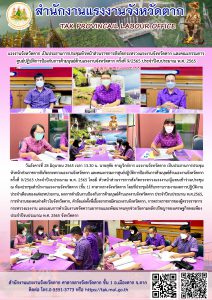 แรงงานจังหวัดตาก เป็นประธานการประชุมหัวหน้าส่วนราชการสังกัดกระทรวงแรงงานจังหวัดตาก และคณะกรรมการศูนย์ปฏิบัติการป้องกันการค้ามนุษย์ด้านแรงงานจังหวัดตาก ครั้งที่ 9/2565 ประจำปีงบประมาณ พ.ศ. 2565