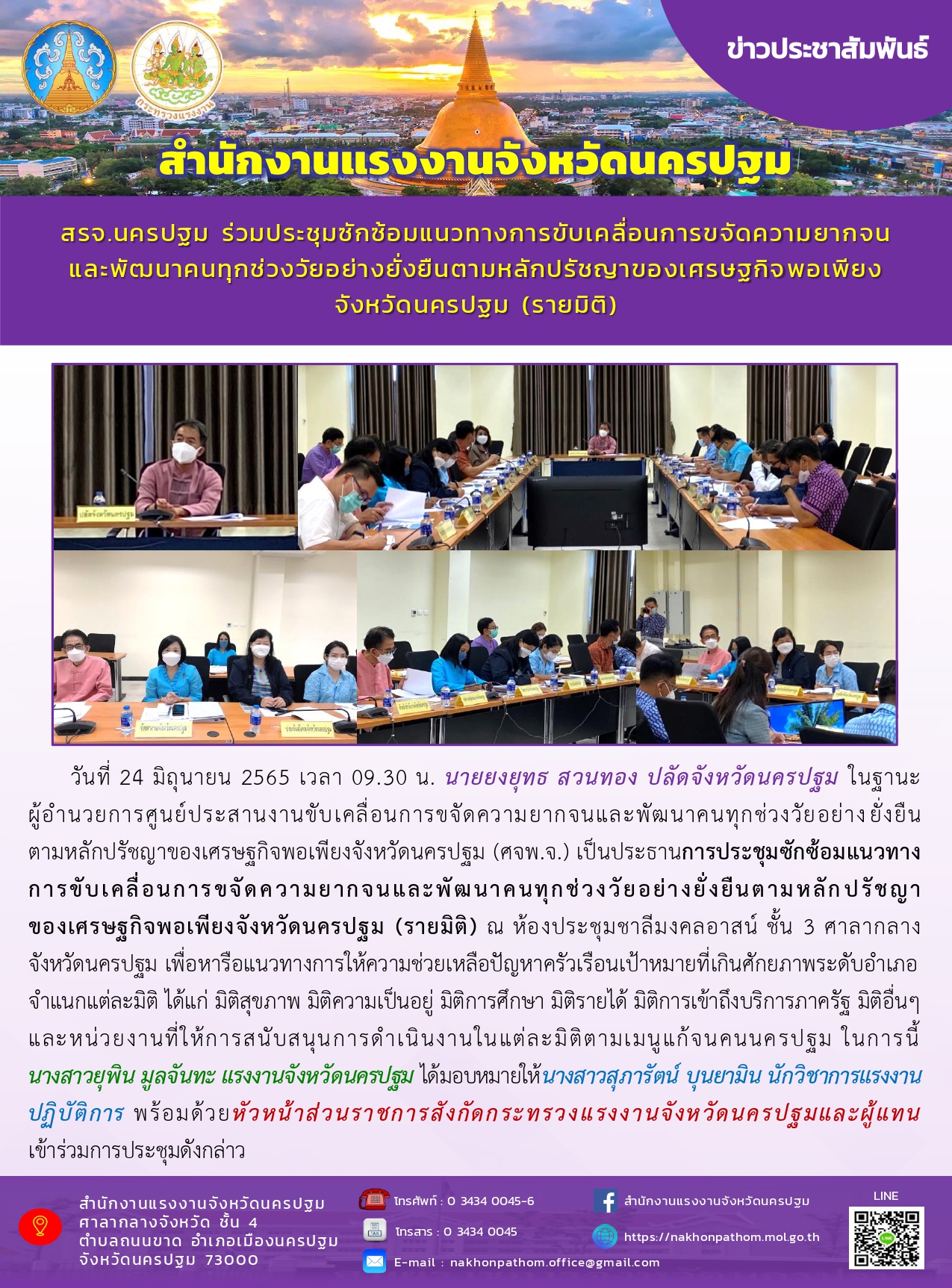 สรจ.นครปฐม ร่วมประชุมซักซ้อมแนวทางการขับเคลื่อนการขจัดความยากจนและพัฒนาคนทุกช่วงวัยอย่างยั่งยืนตามหลักปรัชญาของเศรษฐกิจพอเพียงจังหวัดนครปฐม (รายมิติ)