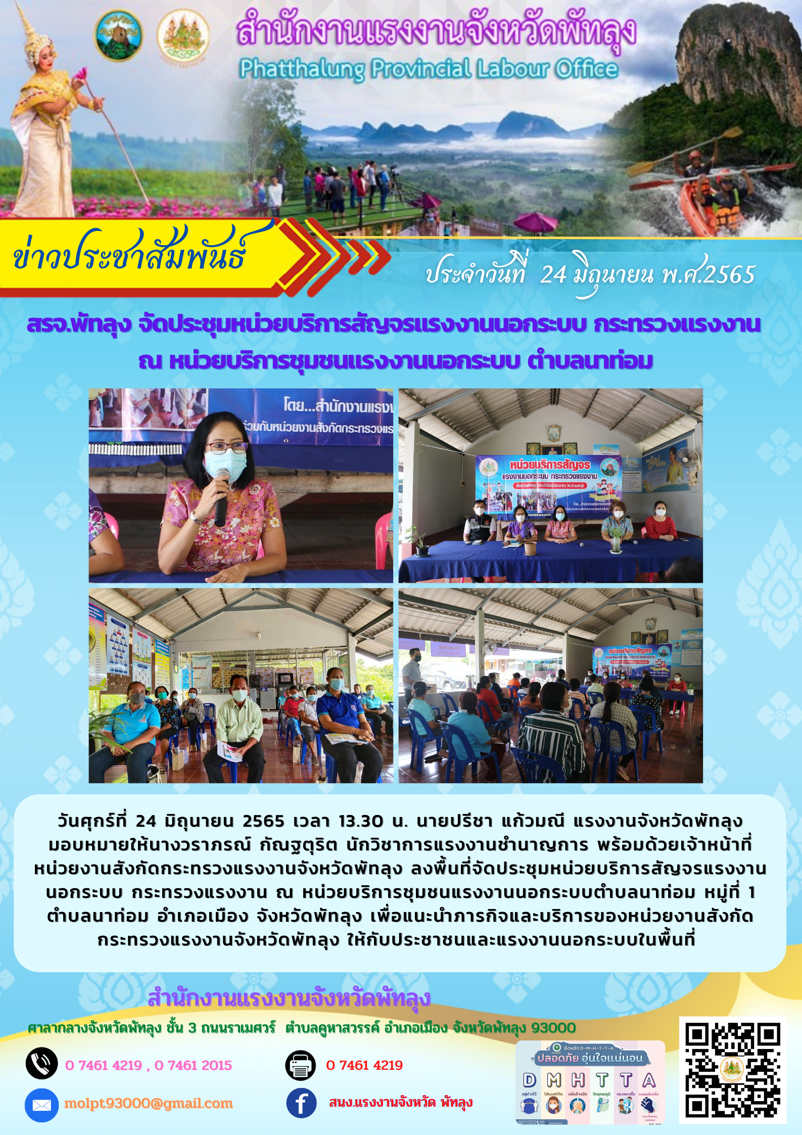 สรจ.พัทลุง จัดประชุมหน่วยบริการสัญจรแรงงานนอกระบบ กระทรวงแรงงาน ณ หน่วยบริการชุมชนแรงงานนอกระบบ ตำบลนาท่อม
