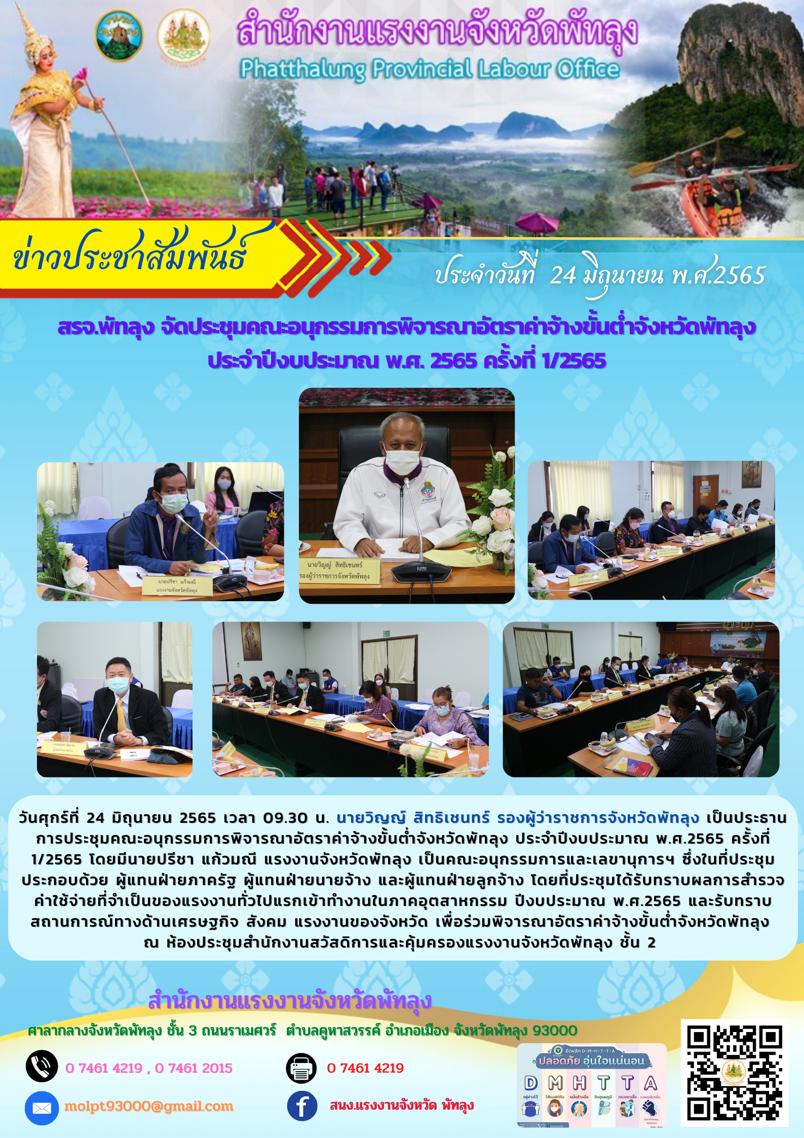 สรจ.พัทลุง จัดประชุมคณะอนุกรรมการพิจารณาอัตราค่าจ้างขั้นต่ำจังหวัดพัทลุง ประจำปีงบประมาณ พ.ศ. 2565 ครั้งที่ 1/2565
