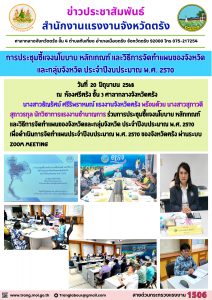 แรงงานจังหวัดตรัง ร่วมการประชุมชี้แจงนโยบาย หลักเกณฑ์ และวิธีการจัดทำแผนของจังหวัด และกลุ่มจังหวัด ประจำปีงบประมาณ พ.ศ. 2570