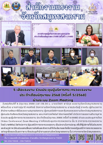 5 เสือแรงงาน ร่วมประชุมผู้บริหารกระทรวงแรงงาน ประจำเดือนพฤษภาคม 2568 (ครั้งที่ 5/2568) ผ่านระบบ Zoom Meeting