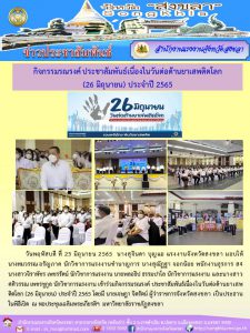 นางอรวรรณ หินตะ แรงงานจังหวัดขอนแก่น ร่วมกิจกรรมวันต่อต้านยาเสพติดโลก และกิจกรรมสร้างเจตคติที่ดีและสร้างความเข้มแข็งเครือข่ายแรงงานป้องกันยาเสพติด ประจำปี 2565