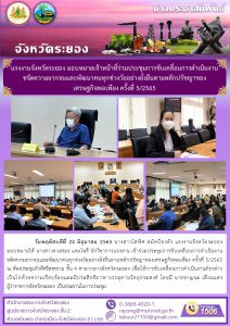 แรงงานจังหวัดระยอง มอบหมายเจ้าหน้าที่ร่วมประชุมการขับเคลื่อนการดำเนินงาน ขจัดความยากจนและพัฒนาคนทุกช่วงวัยอย่างยั่งยืนตามหลักปรัชญาของเศรษฐกิจพอเพียง ครั้งที่ 5/2565