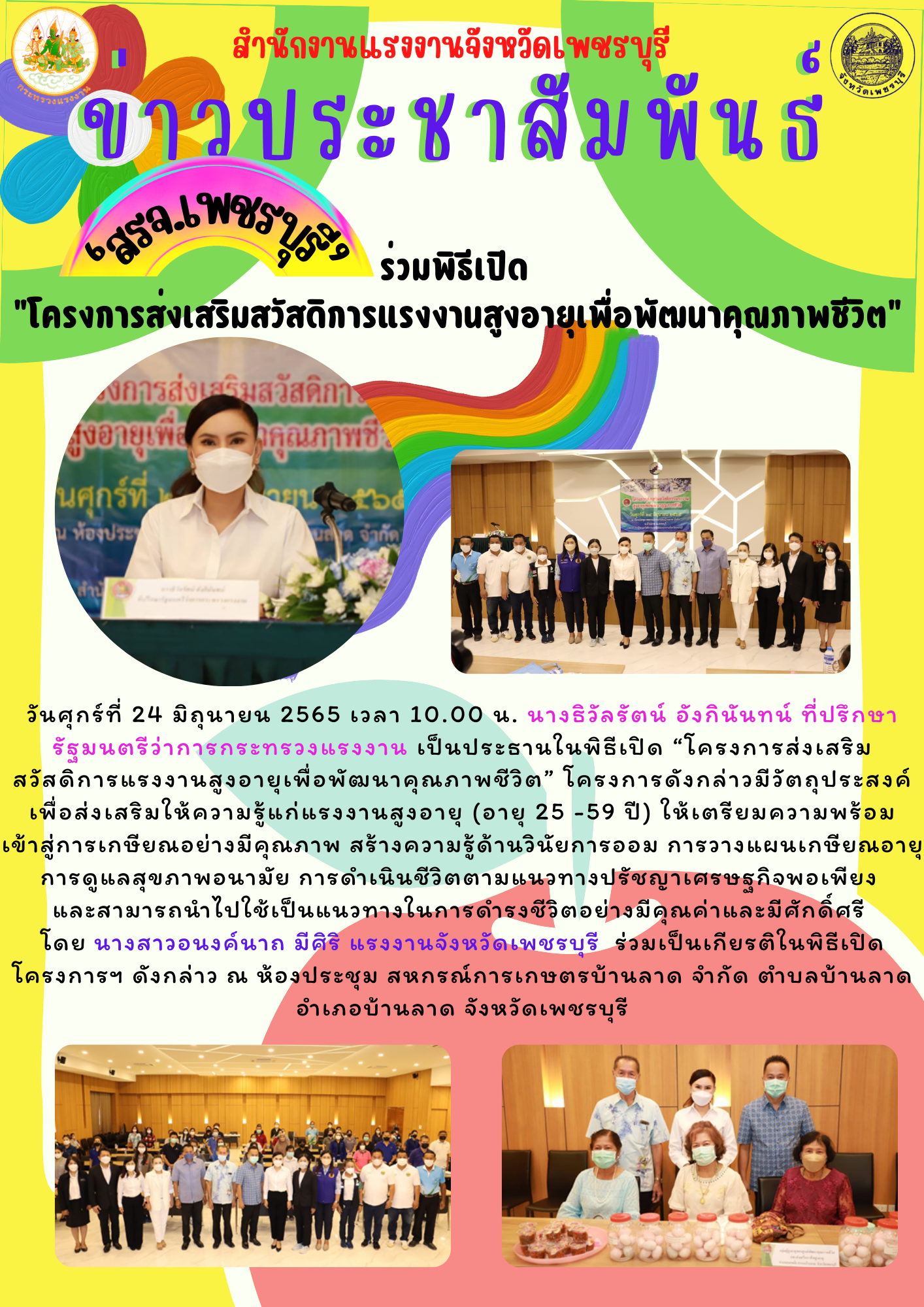 ‘สรจ.เพชรบุรี’ ร่วมพิธีเปิด ‘โครงการส่งเสริมสวัสดิการแรงงานสูงอายุเพื่อพัฒนาคุณภาพชีวิต”