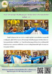 แรงงานจังหวัดพะเยา ร่วมกิจกรรมตักบาตรข้าวเหนียวสืบทอดพระพุทธศาสนา (ตักบาตรวันพุธ) ประจำปีงบประมาณ พ.ศ. 2565
