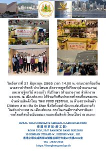 สำนักงานแรงงาน ณ เมืองฮ่องกง ร่วมกับทีมประเทศไทย เยี่ยมชมงานจำหน่ายสินค้าไทย Thai Food Festival ณ ห้างสรรพสินค้า Citistore สาขา Ma On Shan