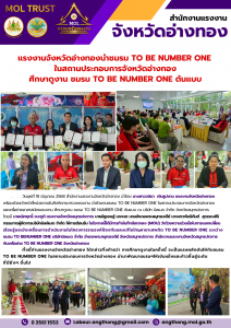 แรงงานจังหวัดอ่างทองนำชมรม TO BE NUMBER ONE ในสถานประกอบการจังหวัดอ่างทอง ศึกษาดูงาน ชมรม TO BE NUMBER ONE ต้นแบบ