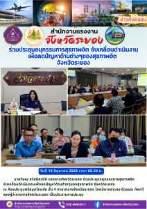 แรงงานจังหวัดระยอง ร่วมประชุมอนุกรรมการสุขภาพจิต ขับเคลื่อนดำเนินงานเพื่อลดปัญหาด้านต่างๆของสุขภาพจิต จังหวัดระยอง