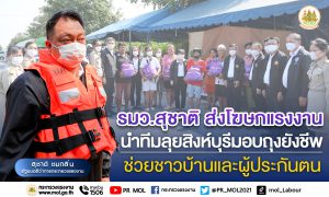 รมว.เฮ้ง ส่ง ‘โฆษกแรงงาน’ นำทีมลุยสิงห์บุรีมอบถุงยังชีพช่วยชาวบ้านและผู้ประกันตนที่ประสบภัย