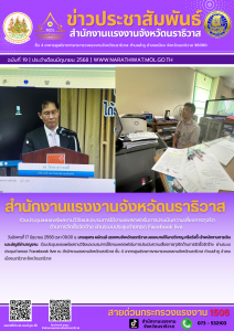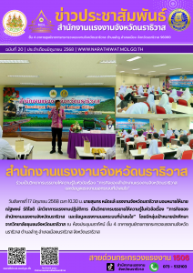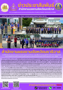สำนักงานแรงงานจังหวัดนราธิวาส จัดพิธีปล่อยแถวชุดตรวจบูรณาการสถานประกอบกิจการ กลุ่มเสี่ยงตามแผนปฏิบัติการป้องกันการบังคับใช้แรงงานหรือบริการและการค้ามนุษย์ด้านแรงงานจังหวัดนราธิวาสประจำปีงบประมาณ พ.ศ. 2568