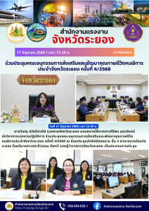 แรงงานจังหวัดระยอง ร่วมต้อนรับคณะอนุกรรมการติดตามผลการดำเนินงานจังหวัด TO BE NUMBER ONE จังหวัดระยอง ประจำปี 2568