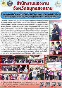 5 เสือแรงงาน ร่วมกับหน่วยงานที่เกี่ยวข้อง ออกตรวจบูรณาการตามแผนปฏิบัติการป้องกัน การบังคับใช้แรงงานหรือบริการ และการค้ามนุษย์ด้านแรงงาน จังหวัดสมุทรสงคราม