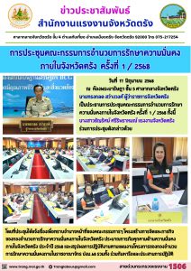 แรงงานจังหวัดตรัง ร่วมการประชุมคณะกรรมการอำนวยการรักษาความมั่นคงภายในจังหวัดตรัง ครั้งที่ 1/2568