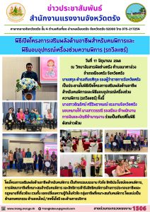 สรจ.ตรัง ร่วมเป็นเกียรติในพิธีเปิดโครงการเสริมพลังด้านอาชีพสำหรับคนพิการและพิธีมอบอุปกรณ์เครื่องช่วยความพิการ (รถวีลแชร์)
