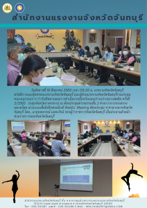แรงงานจังหวัดจันทบุรี สวัสดิการและคุ้มครองแรงงานจังหวัดจันทบุรี และผู้ช่วยแรงงานจังหวัดจันทบุรีร่วมประชุมคณะอนุกรรมการ กำกับติดตามผลการดำเนินงานป้องกันและปราบปรามยาเสพติด ครั้งที่ 3/2565