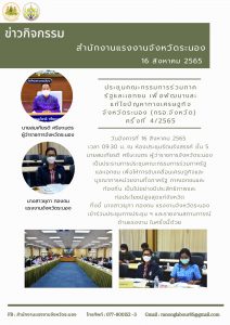 การประชุมคณะกรรมการร่วมภาครัฐและเอกชน เพื่อพัฒนาและแก้ไขปัญหาทางเศรษฐกิจ จังหวัดระนอง (กรอ.จังหวัด ) ครั้งที่ 4/2565