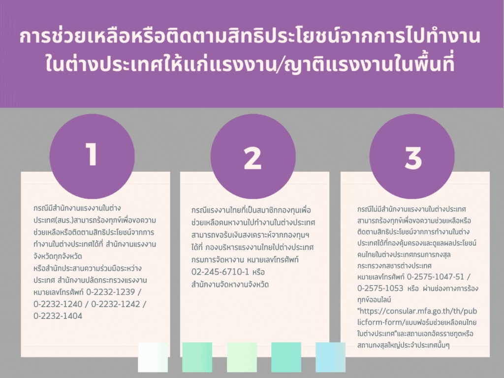 การช่วยเหลือหรือติดตามสิทธิประโยชน์จากการไปทำงานในต่างประเทศให้แก่แรงงาน/ญาติแรงงานในพื้นที่