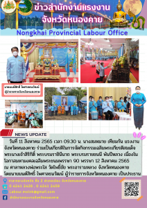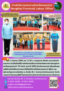 แรงงานจังหวัดหนองคาย ร่วมเป็นเกียรติในการจัดกิจกรรมโครงการน้ำพระทัยพระราชทานส่วนภูมิภาคสภาสังคมสงเคราะห์ฯ 76 จังหวัด ประจำปี 2565 (จังหวัดหนองคาย)