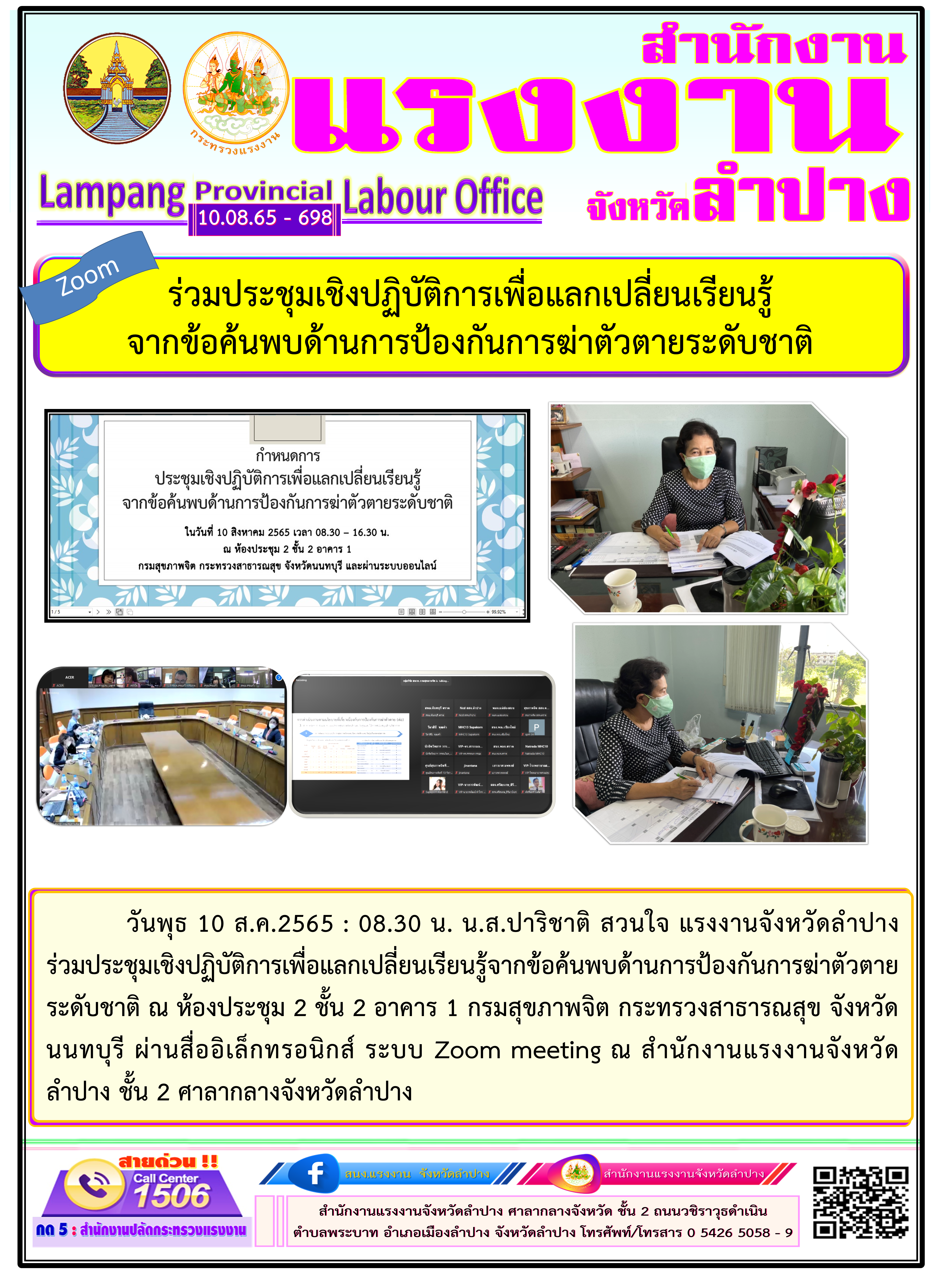 ร่วมประชุมเชิงปฏิบัติการเพื่อแลกเปลี่ยนเรียนรู้ จากข้อค้นพบด้านการป้องกันการฆ่าตัวตายระดับชาติ