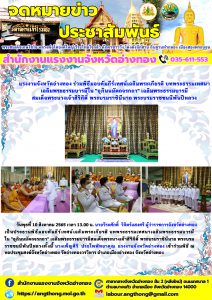 แรงงานจังหวัดอ่างทอง ร่วมพิธีมอบคัมภีร์เทศน์เฉลิมพระเกียรติ บทพระธรรมเทศนา เฉลิมพระธรรมบารมีใน “อุภินนมัตถจรกถา” เฉลิมพระธรรมบารมี สมเด็จพระนางเจ้าสิริกิติ์ พระบรมราชินีนาถ พระบรมราชชนนีพันปีหลวง