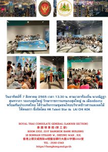 สำนักงานแรงงาน ณ เมืองฮ่องกง ร่วมกิจกรรมชุมชนไทยบริจาคข้าวสารและผลไม้ให้คนชรา ซึ่งจัดโดย HK Tarent Star ณ Lai Chi Kok