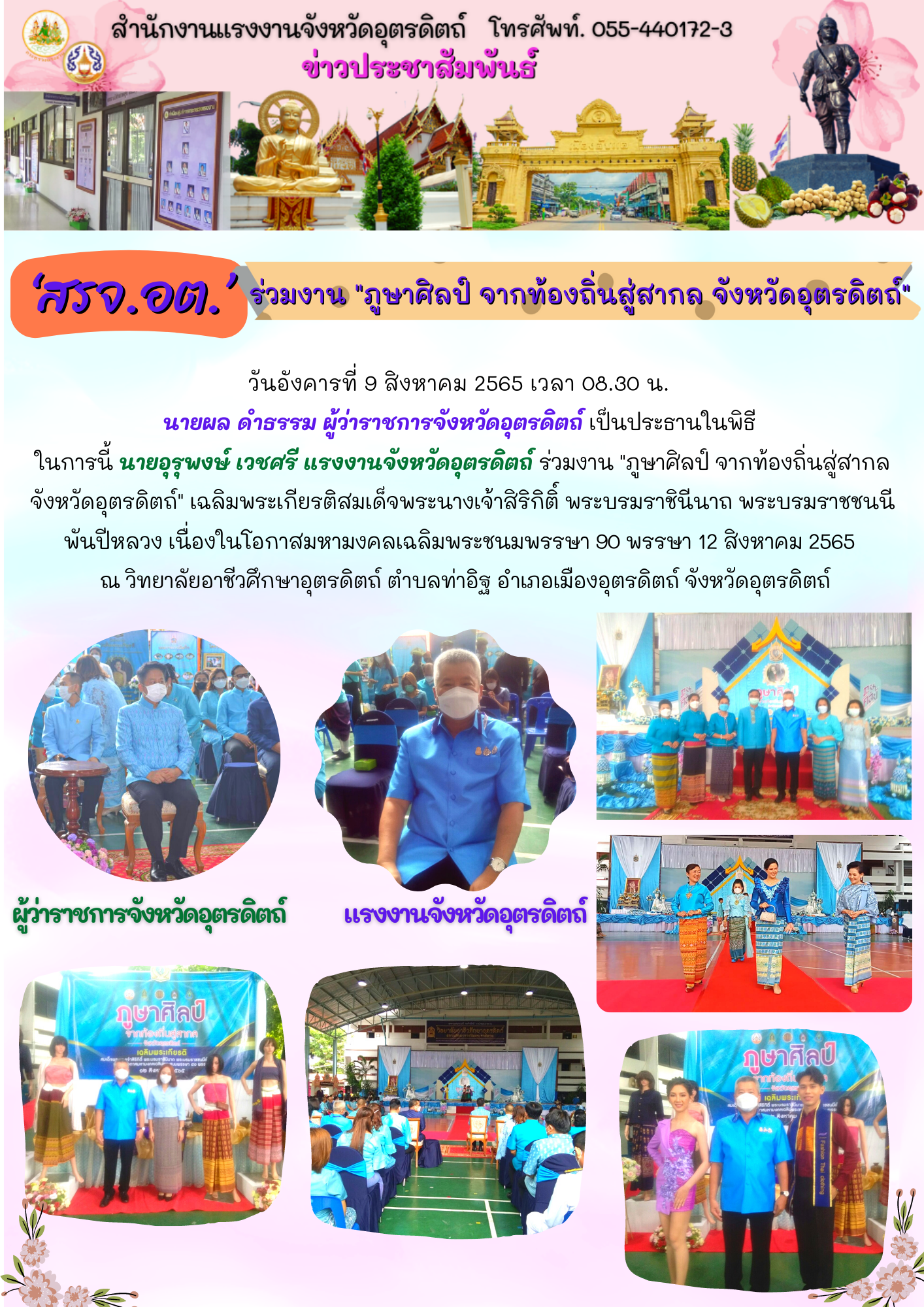 สรจ.อต. แรงงานอุตรดิตถ์ ร่วมงาน “ภูษาศิลป์ จากท้องถิ่นสู่สากล จังหวัดอุตรดิตถ์” เฉลิมพระเกียรติสมเด็จพระนางเจ้าสิริกิติ์ พระบรมราชินีนาถ พระบรมราชชนนีพันปีหลวง