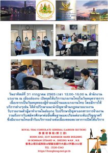 สำนักงานแรงงาน ณ เมืองฮ่องกง เปิดจุดให้บริการแรงงานไทยในวันหยุดราชการ เนื่องจากเป็นวันหยุดของผู้ช่วยแม่บ้านและแรงงานไทย