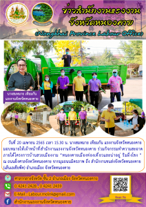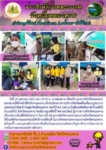 แรงงานจังหวัดหนองคาย มอบหมายให้เจ้าหน้าที่สำนักงานแรงงานจังหวัดหนองคาย ร่วมกิจกรรมทำความสะอาด ภายใต้โครงการบ้านสวยเมืองงาม “หนองคายเมืองท่องเที่ยวและน่าอยู่ ริมฝั่งโขง ”