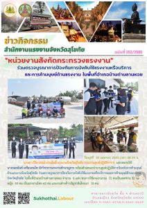 สำนักงานแรงงานจังหวัดสุพรรรณบุรี ร่วมกับหน่วยงานในสังกัดกระทรวงแรงงาน กองอำนวยการรักษาความมั่นคงภายในราชอาณาจักรจังหวัดสุพรรณบุรี และตรวจคนเข้าเมืองจังหวัดสุพรรณบุรี ตรวจบูรณาการป้องกันการบังคับใช้แรงงานหรือบริการและการค้ามนุษย์ด้านแรงงานในสถานประกอบการ ในพื้นที่อำเภอดอนเจดีย์ จังหวัดสุพรรณบุรี