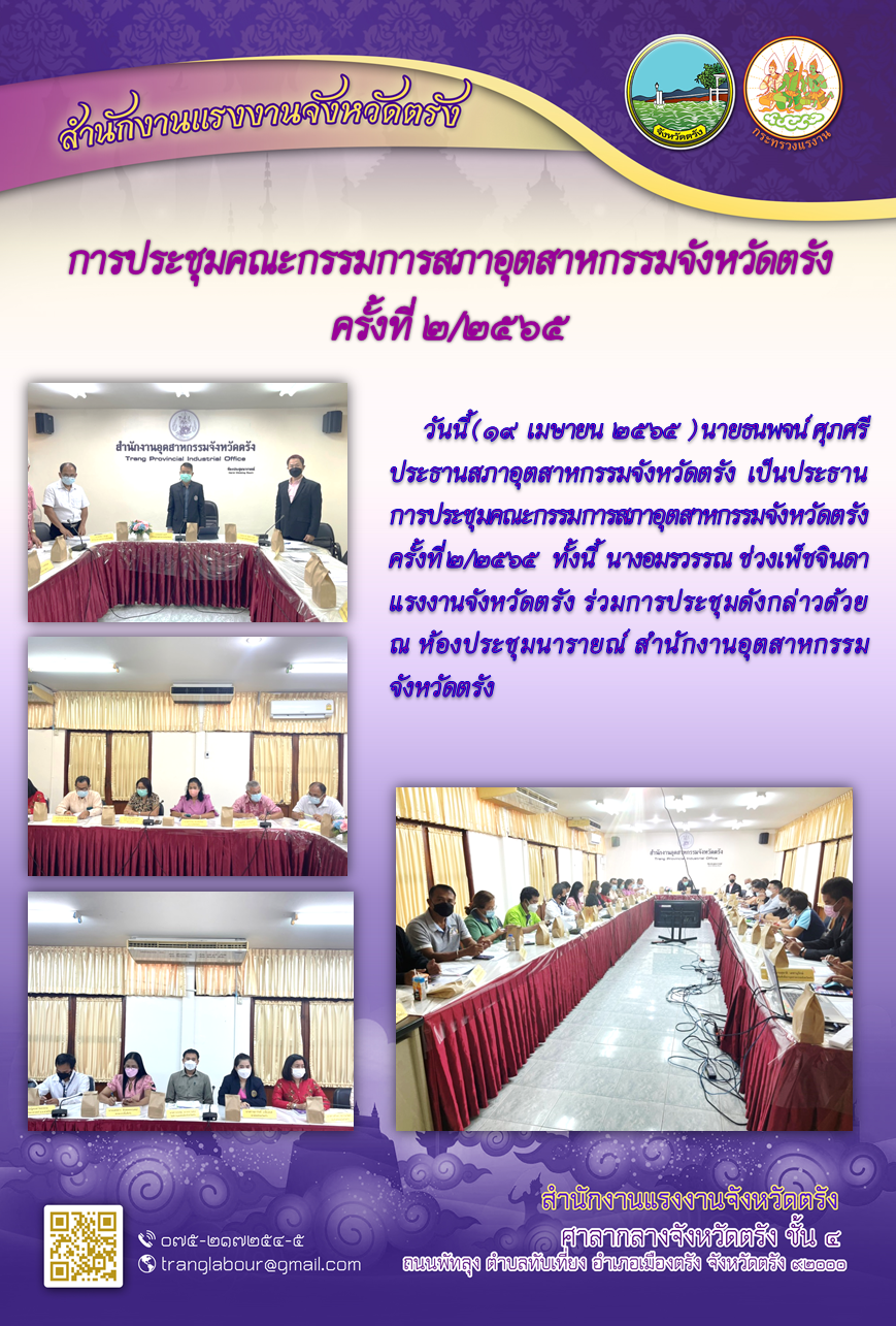 แรงงานจังหวัดตรัง ร่วมการประชุมคณะกรรมการสภาอุตสาหกรรมจังหวัดตรัง ครั้งที่ ๒/๒๕๖๕